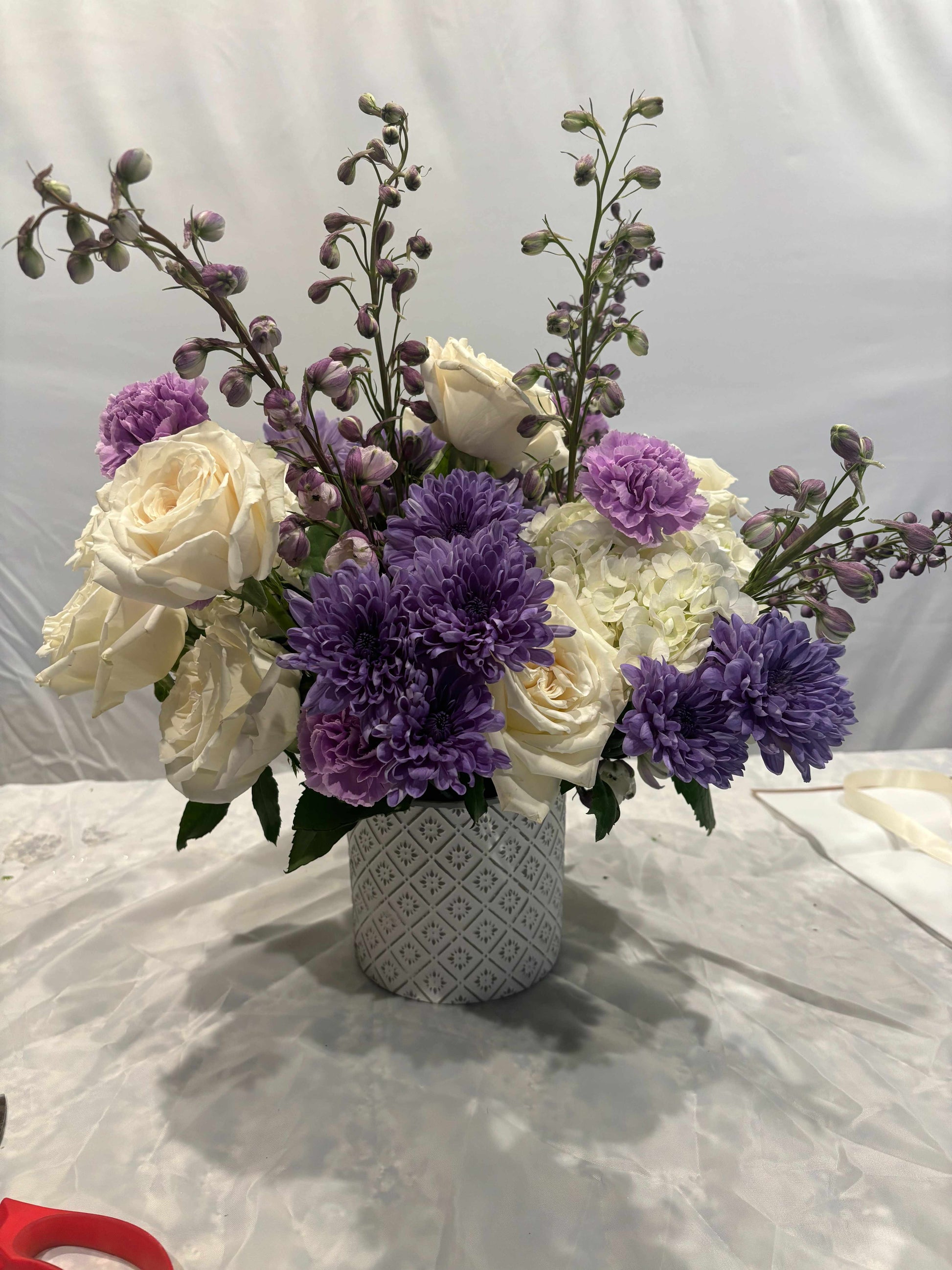 Flowers are subject to seasonal availability. In the event that any of the flowers are unavailable, we will substitute with a comparable option suitable for the category. Flowers may arrive in buds for freshness and longevity. The flowers lifespan may depend on the environment they're in.